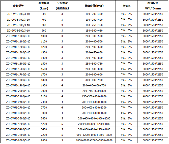 ZG-GWJ裝置適用于3~35kV系列電力系統(tǒng)中,用以補(bǔ)償系統(tǒng)無(wú)功功率,提高功率因數(shù),調(diào)整電網(wǎng)電壓,降低線路損耗,改善供電質(zhì)量,提高供配電設(shè)備的使用效率,容量可從數(shù)百千乏到數(shù)萬(wàn)千乏。該裝置在主接線型式、保護(hù)方式、限制涌流及抑制諧波過負(fù)荷等方面進(jìn)行了綜合考慮,以保證運(yùn)行安全可靠;裝置結(jié)構(gòu)簡(jiǎn)單、緊湊,便于現(xiàn)場(chǎng)安裝和維護(hù);可用于冶金、礦山、石油、化工、機(jī)械、建材、市政、輕工等行業(yè)。