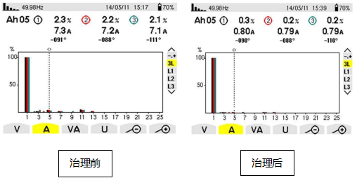江西某水利局供電系統(tǒng)存在大量的諧波源負(fù)載:整流還原爐(12脈)、制氫設(shè)備(12脈)、可控硅調(diào)溫設(shè)備(6脈)、UPS設(shè)備(6脈)等,這就使得在該供電體統(tǒng)中存在大量的諧波電流,諧波電流主要以5、7、11、13次為主;大量諧波的存在嚴(yán)重干擾了其他負(fù)載的安全運(yùn)行、產(chǎn)生計(jì)量誤差、影響設(shè)備使用壽命。
